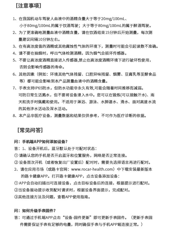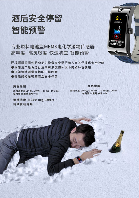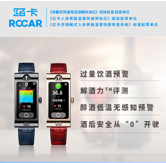 CEM路卡(ROCAR)智能酒精檢測手表健康飲酒喝酒預(yù)警酒精測試大屏幕心率血氧