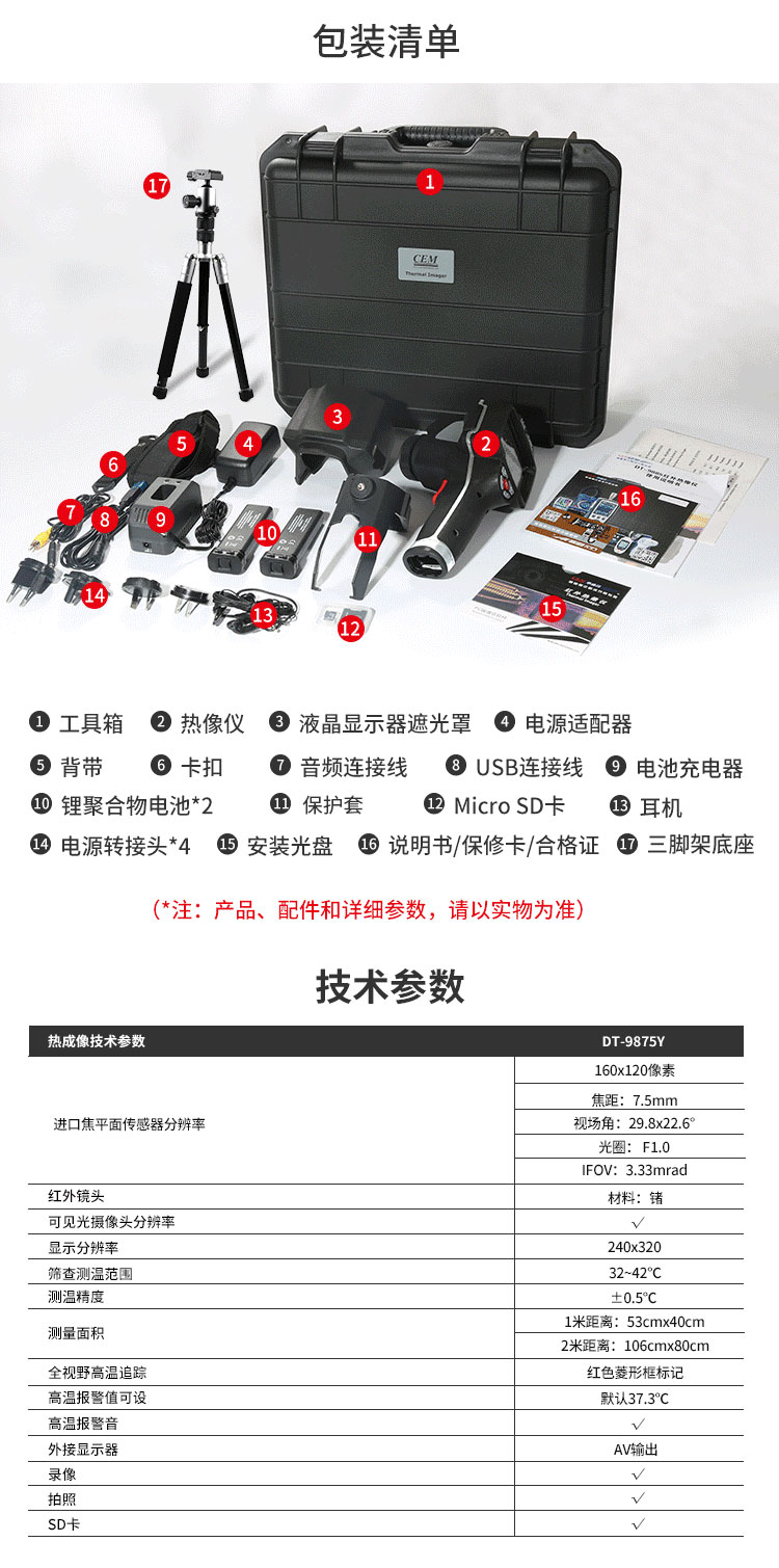 分辨率:160*120、圖像幀頻:50HZ、篩查測(cè)溫范圍:32-42℃、AV輸出大屏全屏顯示