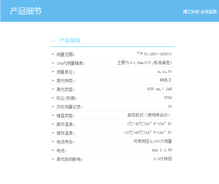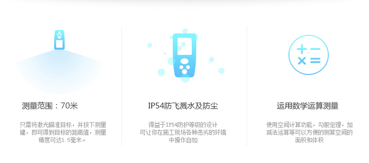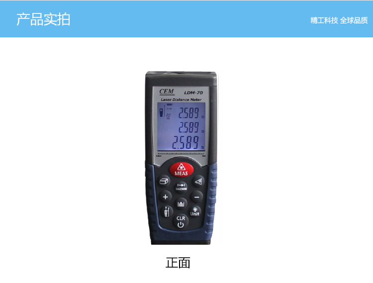 LDM-70為CEM自主設(shè)計(jì)、研發(fā)和制造的工業(yè)級(jí)遠(yuǎn)距離手持式激光測(cè)距儀,使用簡(jiǎn)單安全,僅需單人操作無(wú)需借助其他工具,即使在非??量痰臏y(cè)量環(huán)境中也能輕松應(yīng)對(duì)。65米/70米能滿(mǎn)足更多工業(yè)與建筑行業(yè)的需求。 1、面積體積的計(jì)算功能; 2、運(yùn)用勾股定理間接測(cè)量; 3、加減功能; 4、連續(xù)測(cè)量功能; 5、最大與最小距離跟蹤; 6、背光顯示與多行顯示; 7、蜂鳴提示; 8、精度±1.5mm; 9、外觀小巧,雙注塑防滑軟膠超舒適手感。