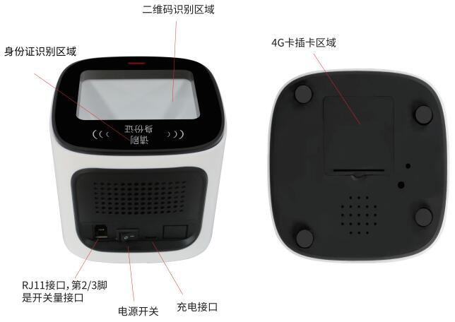 4操作說(shuō)明 1.打開(kāi)電源開(kāi)關(guān),設(shè)備會(huì)自動(dòng)連接網(wǎng)絡(luò),連接成功后將語(yǔ)音提示網(wǎng)絡(luò)已連接成功。 ⒉健康碼驗(yàn)證通行,將健康碼置于掃描窗口上方約5-10cm位置,掃碼成功后會(huì)有語(yǔ)音提示,分別為(掃碼成功-綠碼-請(qǐng)通行,掃碼成功-黃碼-禁止通行,掃碼成功-紅碼-禁止通行)。 3.身份證驗(yàn)證通行,將身份證置于“請(qǐng)刷身份證”位置即可識(shí)讀健康碼數(shù)據(jù),識(shí)讀成功后會(huì)有語(yǔ)音提示,分別為(綠碼-請(qǐng)通行,黃碼-禁止通行,紅碼-禁止通行)。 4.電量不足時(shí)請(qǐng)及時(shí)充電,以保證設(shè)備正常使用。5.網(wǎng)絡(luò)連接續(xù)費(fèi)請(qǐng)聯(lián)系生產(chǎn)廠(chǎng)家提供續(xù)費(fèi)資料。