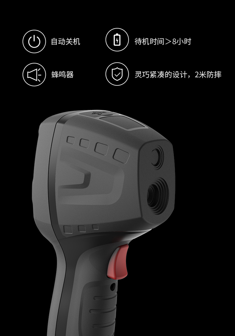分辨率:80*80、圖像幀頻:50HZ、篩查測(cè)溫范圍:32-42℃、藍(lán)牙連接手機(jī)軟件