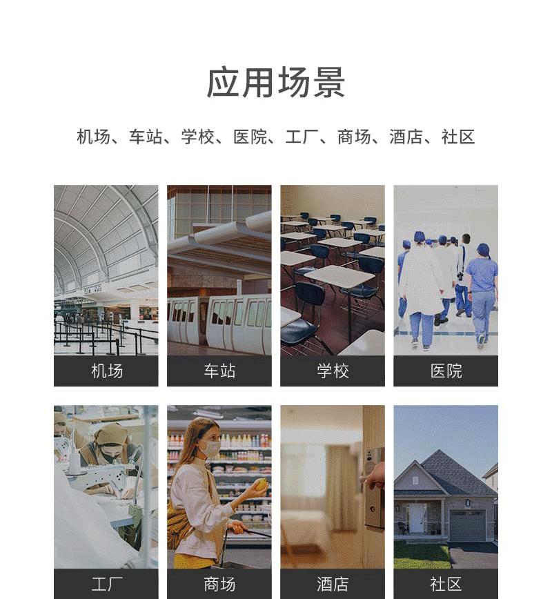 注意事項(xiàng) 紅外熱像告警系統(tǒng)應(yīng)正確安裝,可自動(dòng)跟蹤人體額頭區(qū)域并顯示體溫,操作人員應(yīng)經(jīng)生產(chǎn)廠家專業(yè)培訓(xùn),并嚴(yán)格按說(shuō)明書(shū)使用。 ·應(yīng)嚴(yán)格按照中國(guó)國(guó)標(biāo)(GB_T19146-2010)和各地市場(chǎng)監(jiān)管局的要求創(chuàng)造使用條件;·嚴(yán)格按照規(guī)范要求,安裝在室內(nèi)無(wú)風(fēng)或者微風(fēng)的固定位置使用,室溫環(huán)境在16°℃~32°C,避免陽(yáng)光、風(fēng)和其他熱源干擾(環(huán)境溫度超出16°℃~32°℃,需要安裝空調(diào),并在產(chǎn)品3m內(nèi)無(wú)風(fēng)或者微風(fēng)); ·若安裝在室外,必須搭建棚子或者板房來(lái)保證環(huán)境穩(wěn)定; ·戶外陽(yáng)光照射后、劇烈運(yùn)動(dòng)后或從溫差較大的戶外場(chǎng)景進(jìn)入室內(nèi),需在室內(nèi)環(huán)境平靜靜置5分鐘后進(jìn)行測(cè)試。