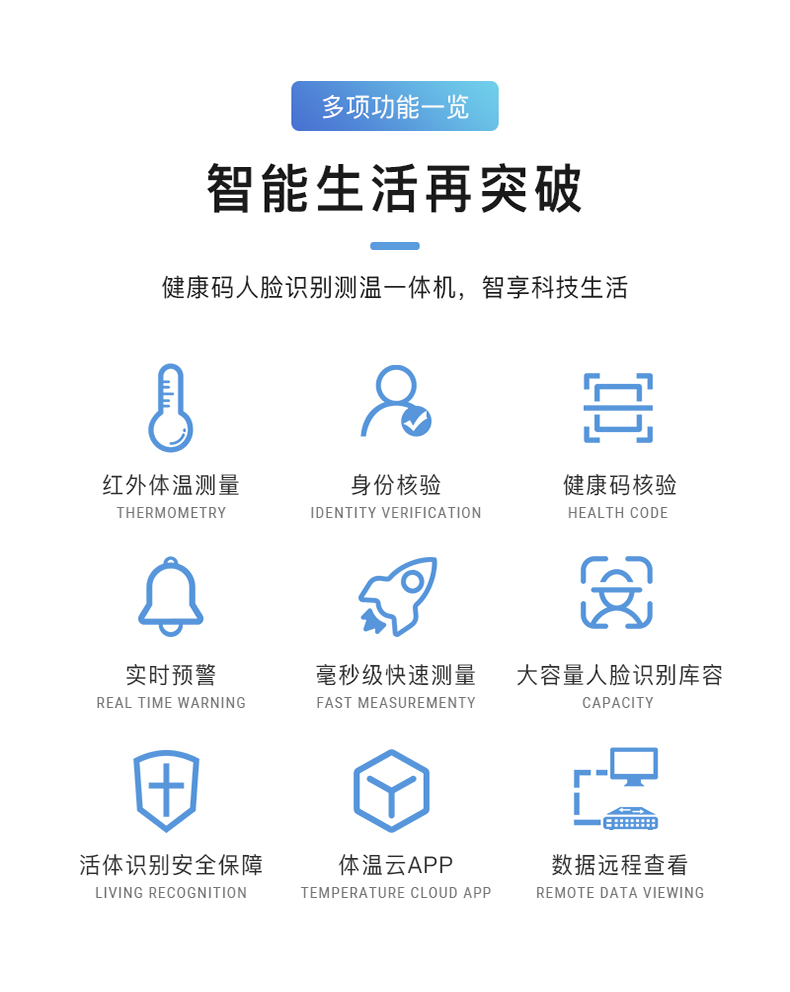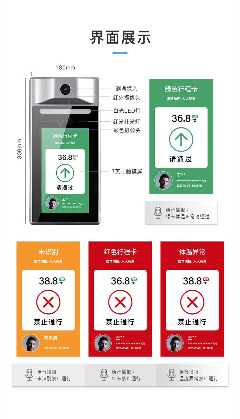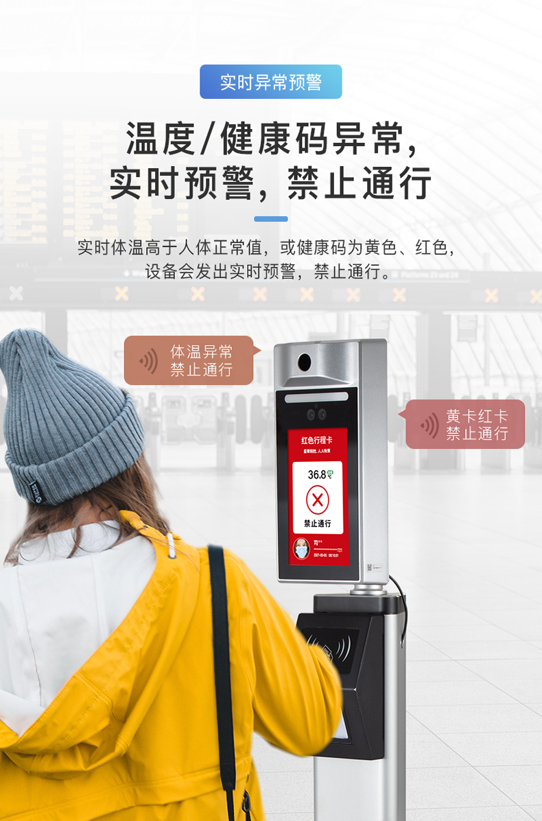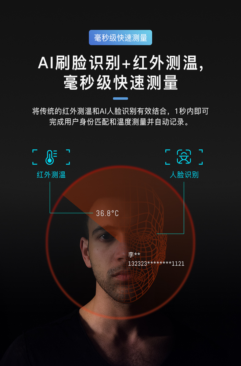 身份證/國康碼讀取智能核驗終端 ·AI人臉識別測溫 ·插電聯(lián)網(wǎng)即用·遠(yuǎn)距離高精度測溫·身份證比對 ·可組網(wǎng)和深度定制