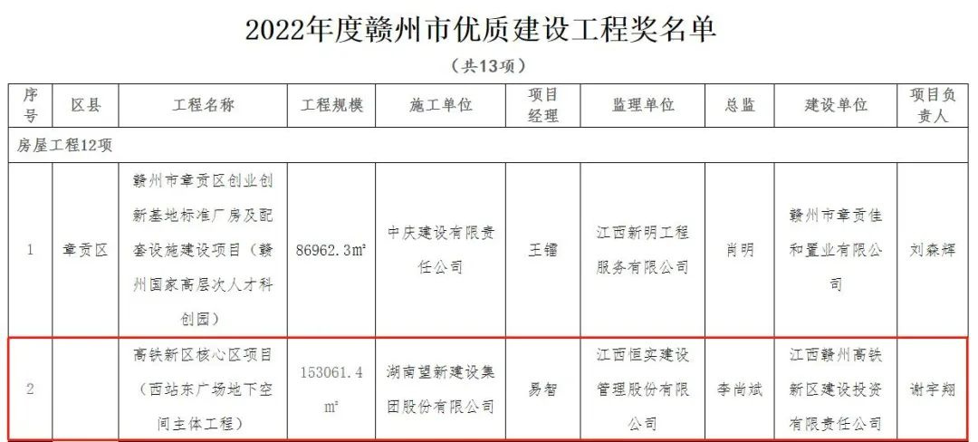 由贛州城投集團負責(zé)建設(shè)實施的高鐵新區(qū)核心區(qū)項目(西站東廣場地下空間主體工程)榮獲贛州市優(yōu)質(zhì)工程獎,由集團組織實施的市委黨校新建學(xué)員教學(xué)樓建設(shè)項目等4個項目榮獲2022年上半年贛州市工程質(zhì)量管理標準化示范工地榮譽稱號。