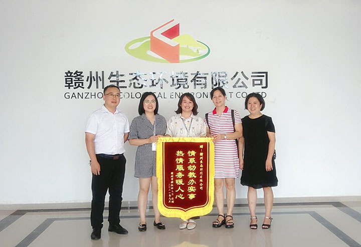 9月23日上午,贛州市濱江幼兒園園長(zhǎng)及家長(zhǎng)代表來(lái)到生態(tài)環(huán)境公司,為公司送來(lái)一面寫(xiě)著“熱情服務(wù)暖人心,情系幼教辦實(shí)事”的感謝錦旗。