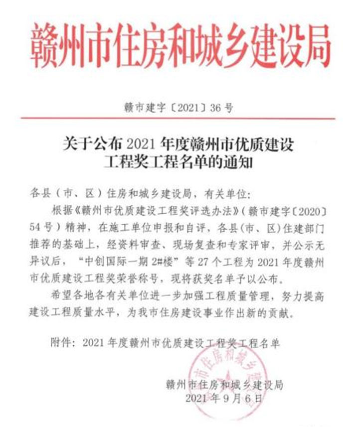 日前,贛州市住房和城鄉(xiāng)建設(shè)局公布了2021年度贛州市優(yōu)質(zhì)建設(shè)工程獎工程名單,由贛州城投集團(tuán)承建的贛南職業(yè)技術(shù)學(xué)院、贛州市中心城區(qū)贛南大道快速路工程一標(biāo)段(新世紀(jì)大橋至章江大橋西側(cè))、贛州市迎賓大道(含飛翔路段)及文明大道快速路工程二標(biāo)段、高架主干路網(wǎng)建設(shè)工程(贛州市客家大道西延高架段)、東江源大道北延(105國道和樂段)市政道路工程共5個項目獲獎。
