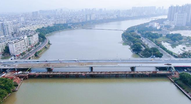 南河大橋拓寬改造二期項目全線長940米,其中主橋長415米,寬18米,建設內容包括拆除既有老橋,在老橋原位新建一幅18米寬橋梁;北岸東側新建一處地下車庫;西側改造現有景觀停車場等,項目建成后,將大大緩解南河大橋交通擁堵問題,提高新老城區(qū)過江通行能力。