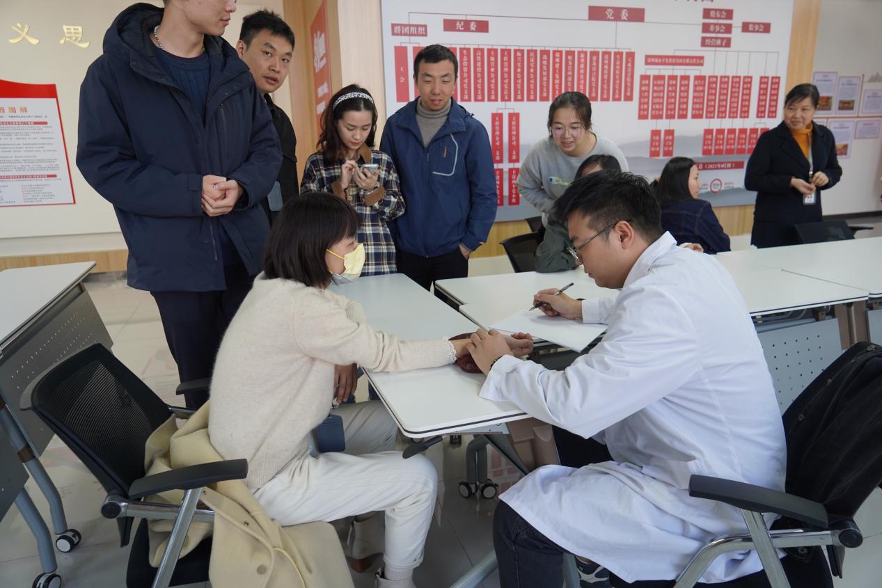 本次義診活動采取一對一問診模式,醫(yī)護人員為就診員工進行把脈、聽診、測血壓血糖等常規(guī)檢查,根據(jù)實際癥狀進行了手診、面診、舌診、脈診等針對性檢查。此次活動還提供了拔罐、推拿按摩、經(jīng)絡調理、穴位療法等健康服務,并科普疾病預防、中醫(yī)養(yǎng)生保健等知識。