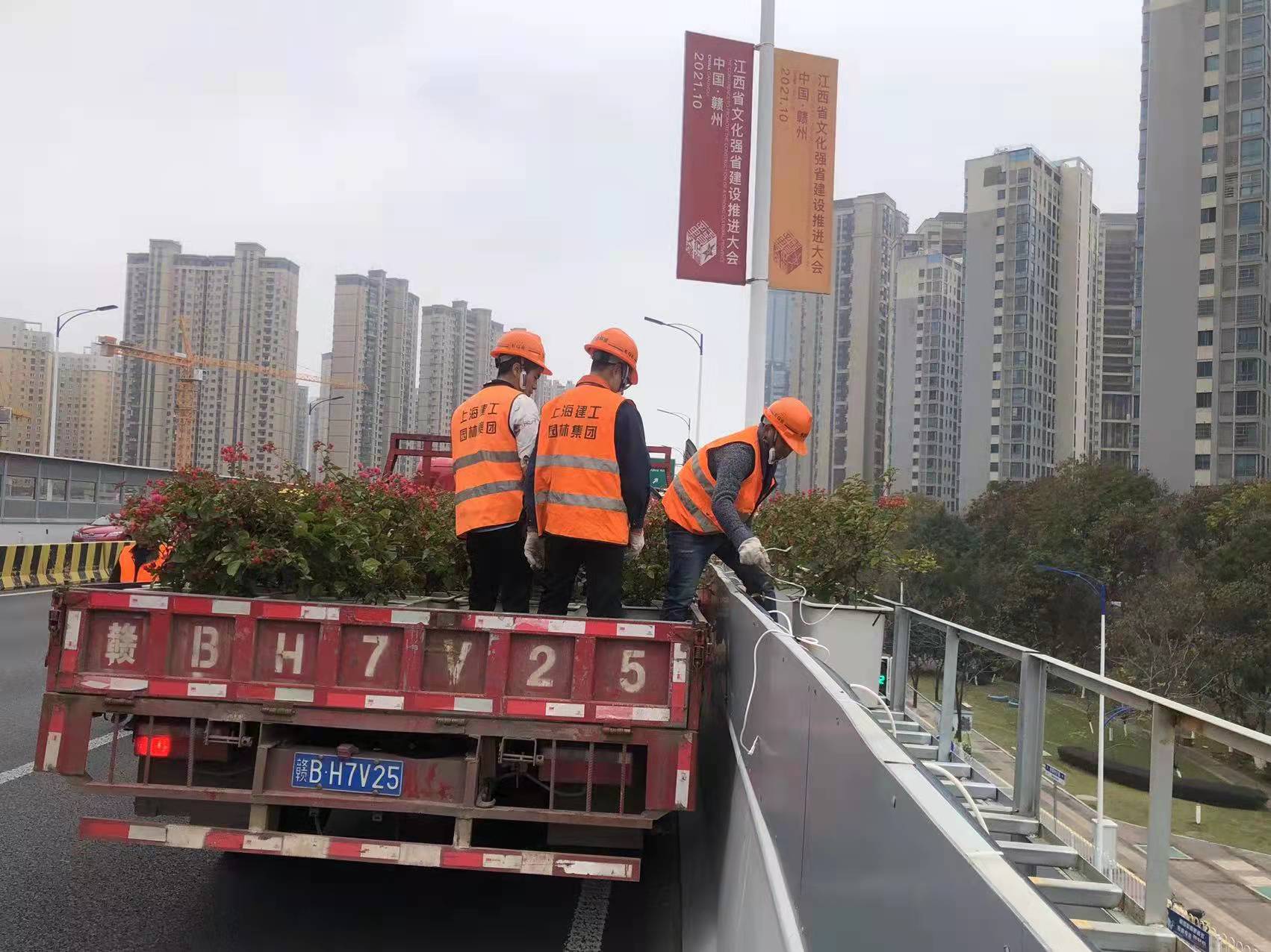 12月25日一大早,在贛南大道快速路與東江源大道快速路互通立交,贛州城投集團分了5組20人,對在現場的三角梅進行遷移。贛州城投集團的工作人員介紹說:“遷移的時候,我們要特別注意對花箱及三角梅成品的保護,同時,我們采取了設置安全錐、安全導向牌等措施,確?,F場施工安全。”